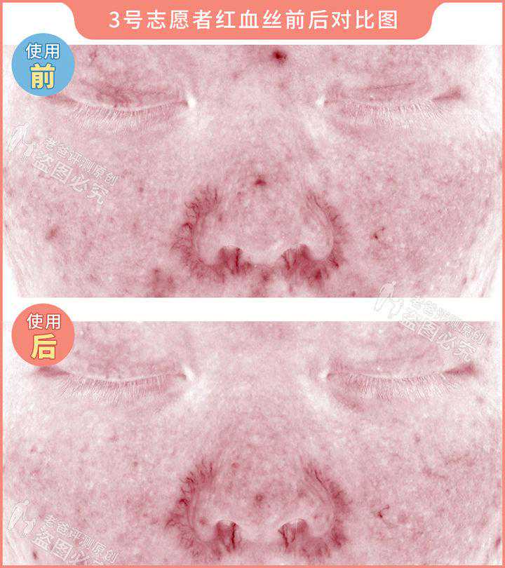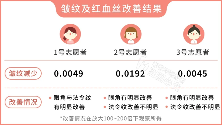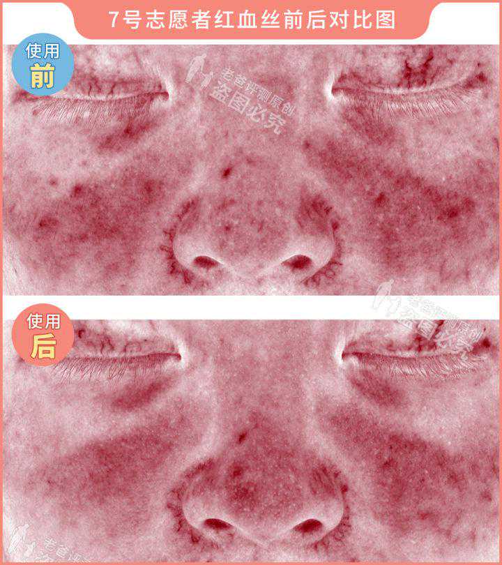 另外我们也观察了志愿者们面部的红血丝情况,少数有所改善,大多数没改善。由此我们不能确定美容仪是否能对面部红血丝起到改善作用。