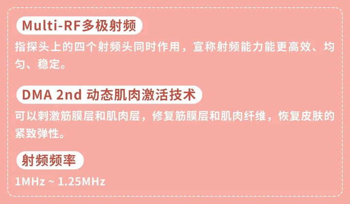 雅M这款美容仪主打的技术是红光+射频+微电流的复合。